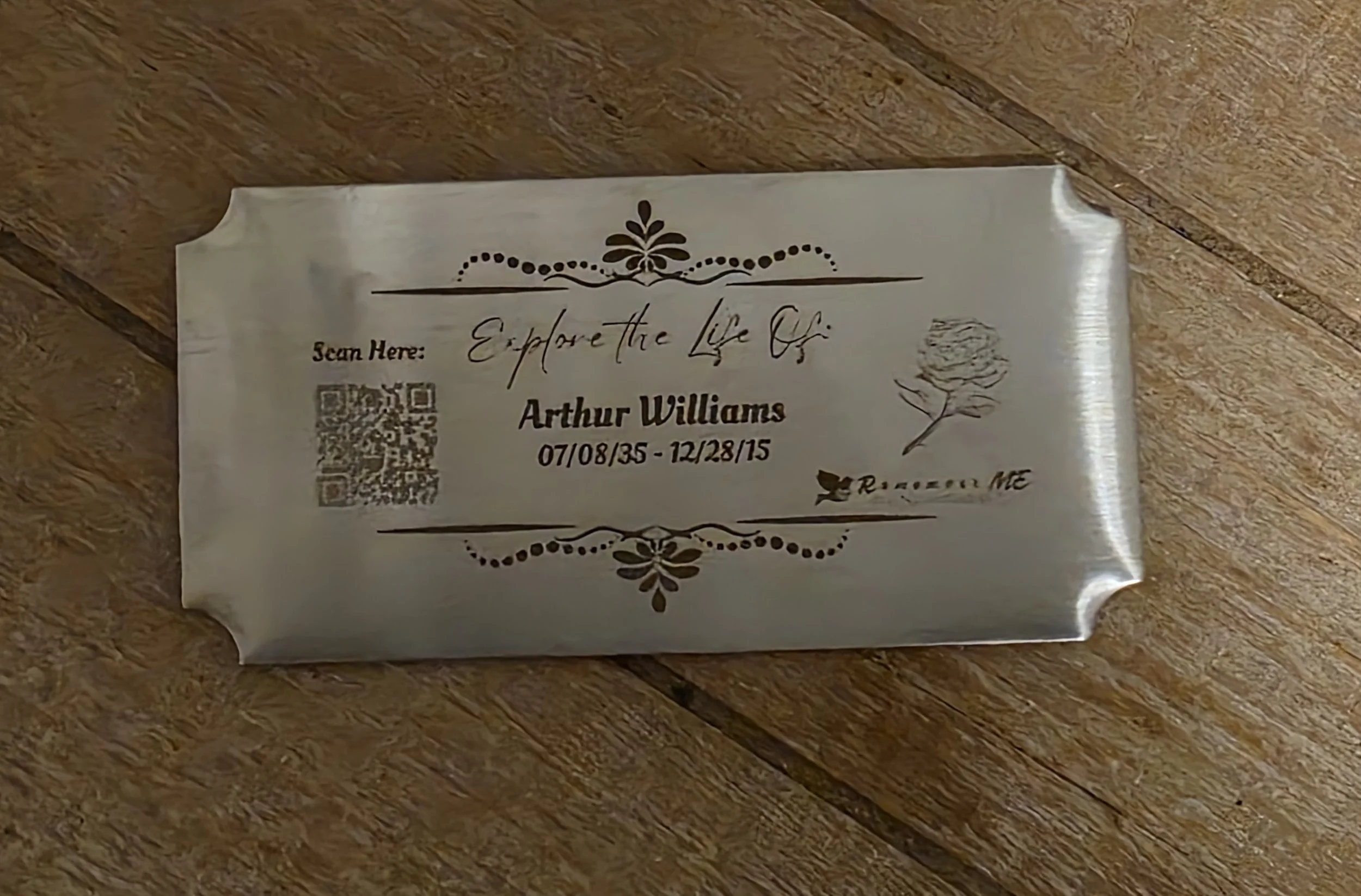 Crafted from premium stainless steel and etched with precision, Legacy Plaques are more than memorials—they’re vessels of remembrance. Each plaque features a custom QR code that links to a digital tribute, allowing stories, photos, and memories to live on beyond the moment. Available in black, silver, and gold finishes, these plaques honor lives with beauty, durability, and soul.
